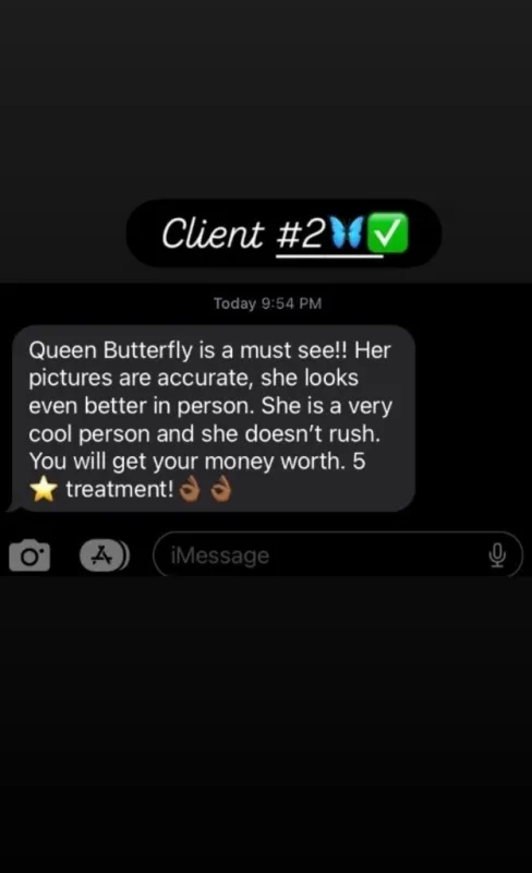 Hey itโs queen butterfly , your slim thick ๐exotic juicy treat๐ญ๐ฆ Iโm a toptier compaion ready to please & fulfill all your needs and desires ๐คญ๐ INCALLS/OUTCALLS AVALIABLE 24hrs๐ โผ Safe & Clean ๐ All real pictures โno bare services , โno gfe , โNo Daty , โNo Greek โผ If youre interested in having a great and discreet๐คซ time dont hesitate to contact me ๐ฒ ๐ญ FaceTime Shows ๐ญ